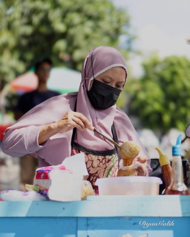 A woman selling cilok. Gear: Canon EOS RP. Lens: Canon 50mm. Model: -. Spot: Alun-alun kidul yogyakarta. Editor: Adobe Lightroom.
